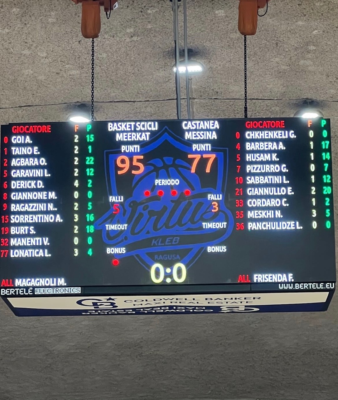 L’ultima frazione scorre senza particolari scossoni: entrambe le squadre segnano 24 punti, ma il Basket Scicli Meerkat gestisce con maturità il vantaggio fino al 95-77 finale.