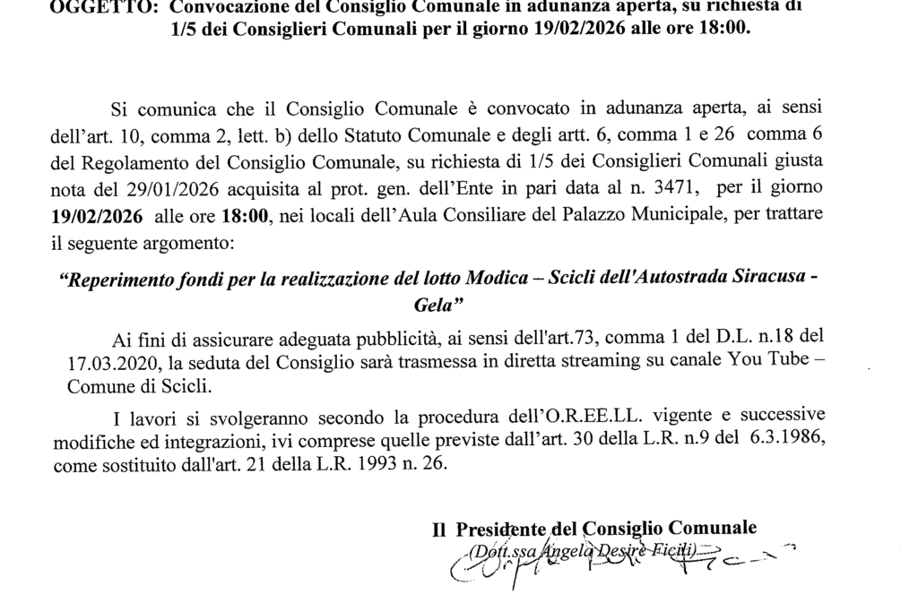 EvidenzaPolitica Consiglio comunale aperto sull’Autostrada Siracusa-Scicli 11 Febbraio 2026 Redazione
