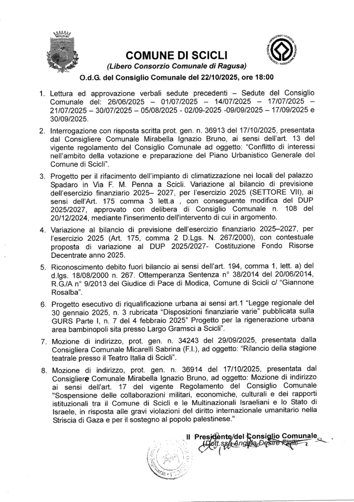 Politica Consiglio comunale il 22 ottobre. Otto i punti all’Ordine del giorno. 17 Ottobre 2025 Redazione