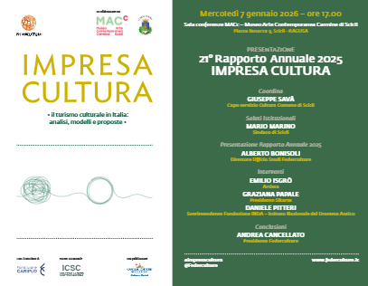 “La scelta di Federculture di presentare a Scicli il Rapporto annuale Impresa Cultura rappresenta un importante riconoscimento nazionale per il lavoro del Museo MACc nel suo primo anno di vita” -commenta il sindaco Mario Marino, che farà gli onori di casa. Coordinerà i lavori Giuseppe Savà, capo servizio cultura del Comune di Scicli.