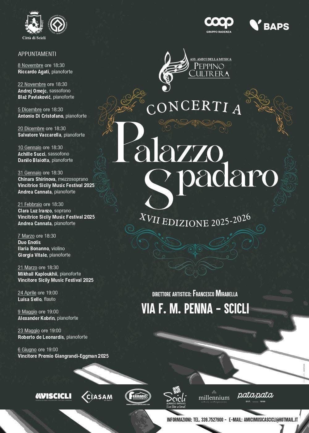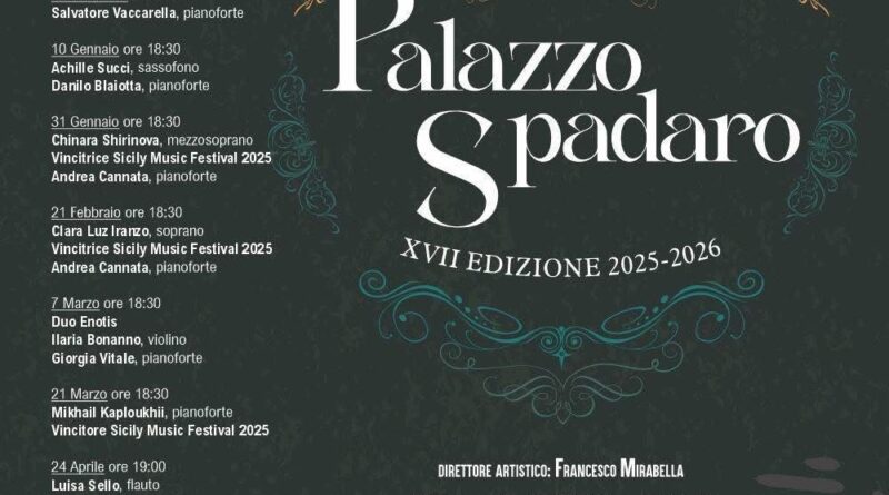 I Concerti di Palazzo Spadaro dall’8 novembre 2025. Un ricco programma con musicisti di valore.