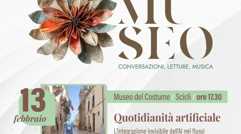 Iniziano nel pomeriggio “I Venerdì del Museo”, in via Mormina Penna a Scicli. L’appuntamento è alle ore 17,30 nei locali del Museo del Costume. L’incontro è sul tema “Quotidianità artificiale”. L’integrazione invisibile dell’AI nei flussi di lavoro quotidiani: dalla Sanità agli Enti Locali, dalla Musica alle Arti visive. Ne parleranno Vincenzo Carbone e Danilo Giacchino. Ingresso libero.