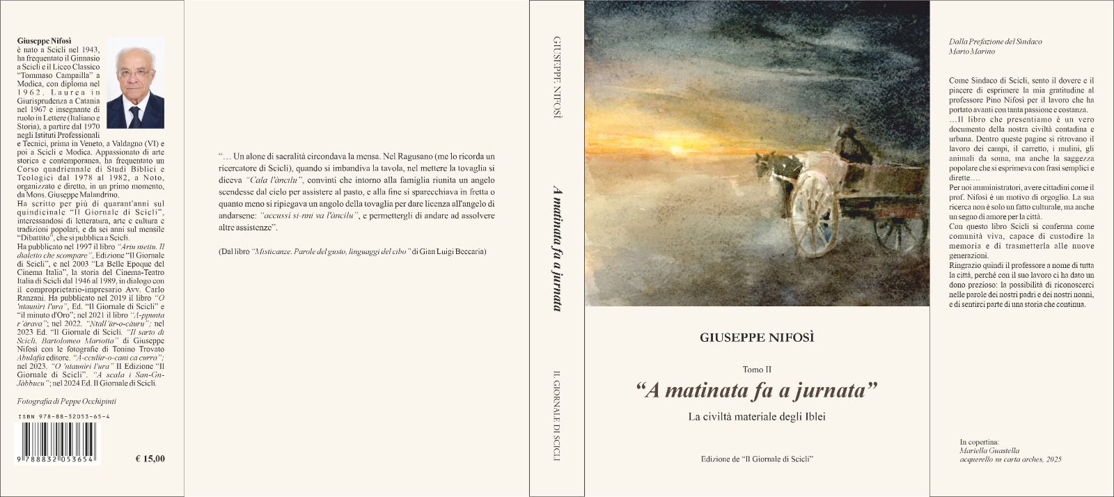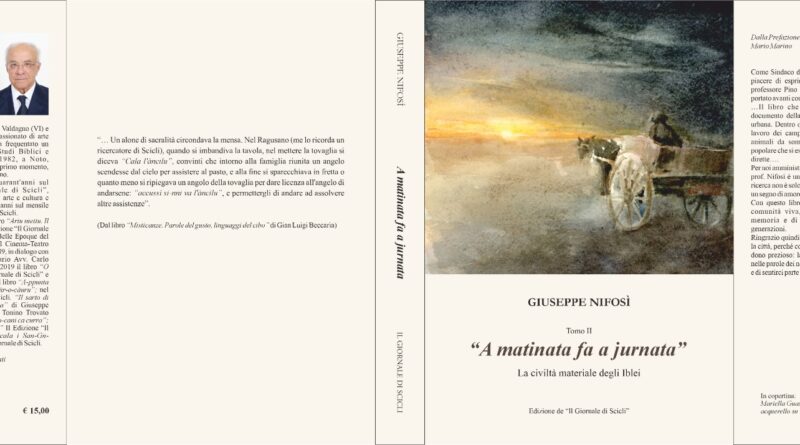 Si presenta il nuovo libro del prof. Giuseppe Nifosì sul dialetto di Scicli. Si intitola “A matinata fa a Jurnata”, edito dal Giornale di Scicli. L’appuntamento è per domenica 28 dicembre alle ore 18,30 nella Chiesa di San Giovanni, in via Mormina Penna a Scicli. Parleranno del libro Giuseppe Pitrolo, Paolo Nifosì e Franco Causarano, che converseranno con l’autore. In apertura i saluti istituzionali del Sindaco Marino e dell’Assessore Giuseppe Mariotta. Il Comune di Scicli infatti patrocina l’iniziativa, insieme alla BSPS, il Movimento Brancati, Ferraro Immobiliare e il GdS.