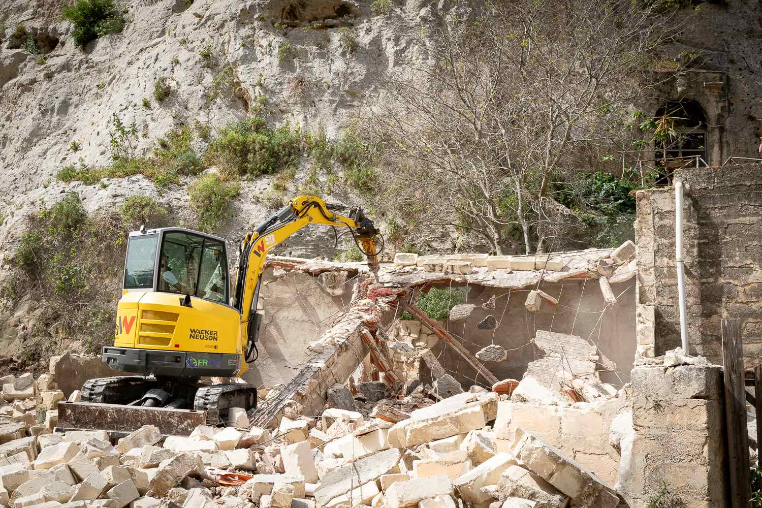 Primo atto concreto stamattina al quartiere Piedigrotta, al termine della Cava di San Bartolomeo. In programma c’Γ¨ stata la demolizione di un fabbricato abusivo su un terreno privato che verrΓ trasformato in uno spazio verde donato al pubblico: un giardino d’autore, con sculture e installazioni che ne faranno un luogo-simbolo per l’arte e la bellezza. La demolizione effettuata avrΓ anche la funzione di restituire “visivamente” ai visitatori il panorama attorno e sulla piccola e affascinante chiesa rupestre di Santa Maria Piedigrotta (XVI sec.). Un’area, quindi, destinata a Parco pubblico con allestimenti d’arte che vedono impegnato l’artista sciclitano Sasha Vinci. Un progetto innovativo, che ha attirato stamane gruppi di giovani, ma anche operatori culturali, giornalisti, e gli stessi abitanti del luogo-quartiere.